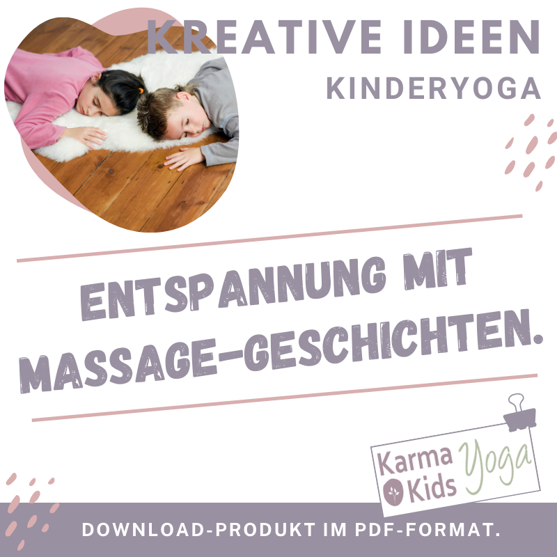 Massagegeschichten sind besonders flexibel einsetzbar: Sie können auf der Matte liegend oder bequem auf dem Stuhl sitzend durchgeführt werden und eignen sich so als liebevolle Ergänzung zur Yogastunde oder aber auch als kleine Auszeit (Brain Break) während der Hausaufgaben oder im Schulalltag. In diesem PDF-Download findest du 17 fantasievolle, kurze Geschichten mit leicht umsetzbaren Massage-Anleitungen, ideal für Kinder im Alter von 4 bis 9 Jahren.