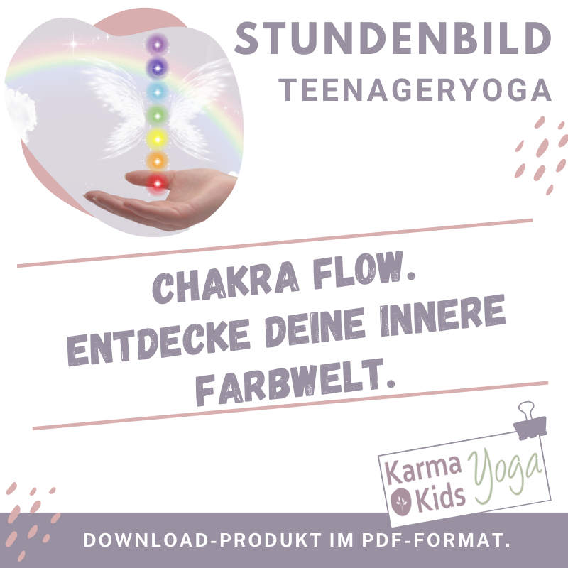 Mit diesem kreativen Stundenbild bietest du Jugendlichen ab ca. 9 Jahren eine einzigartige Yogastunde, die sie durch die Welt der Chakren führt. Dabei lernen die Jugendlichen die Chakren durch Farben, Gefühle und passende Asanas kennen – eine spielerische und achtsame Verbindung zu ihrer inneren Welt.